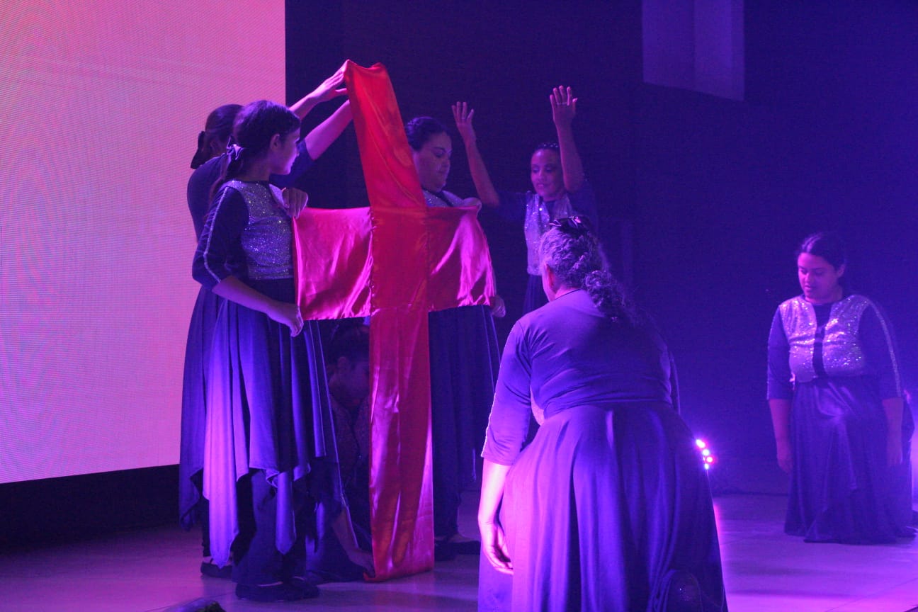 Durante o culto, diversos grupos de dança se apresentaram, exaltando ao Senhor com arte e